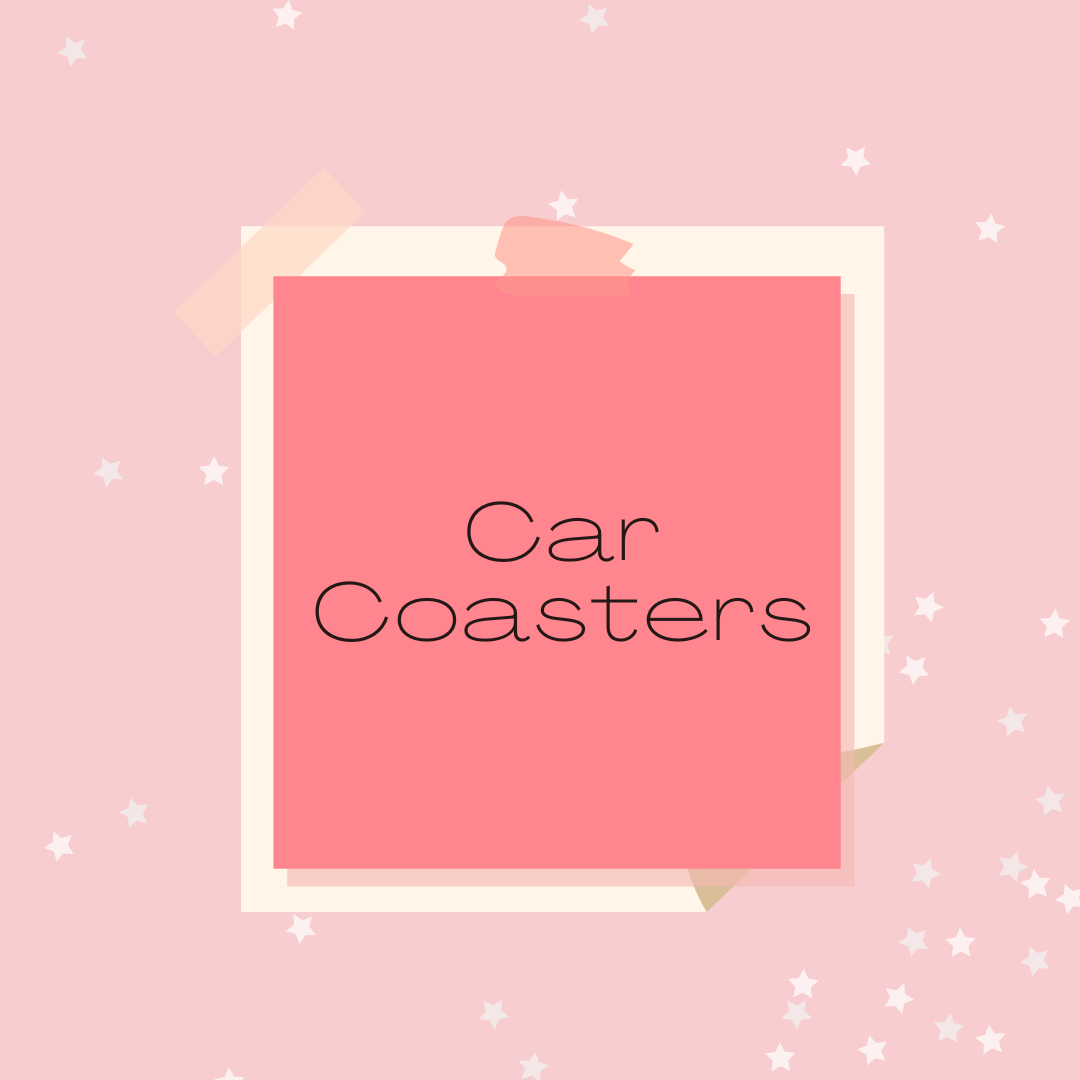 Car coasters come in a set of (2) with same design in a 3x5 self seal bag