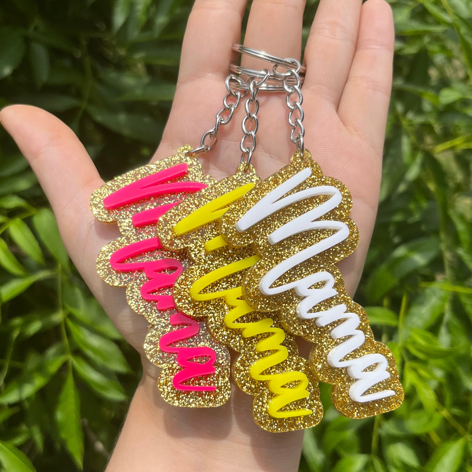 Gold Glitter Name Keychain