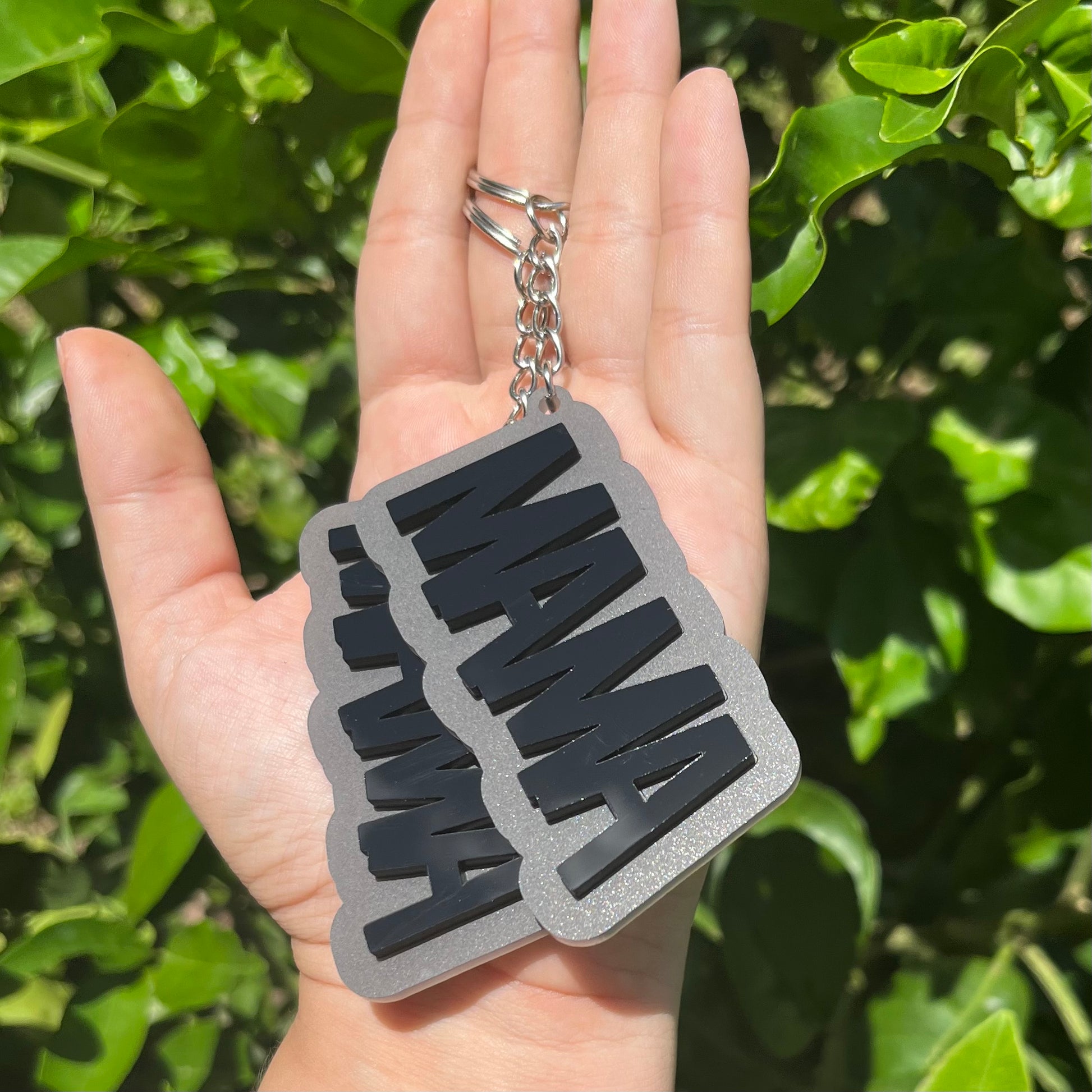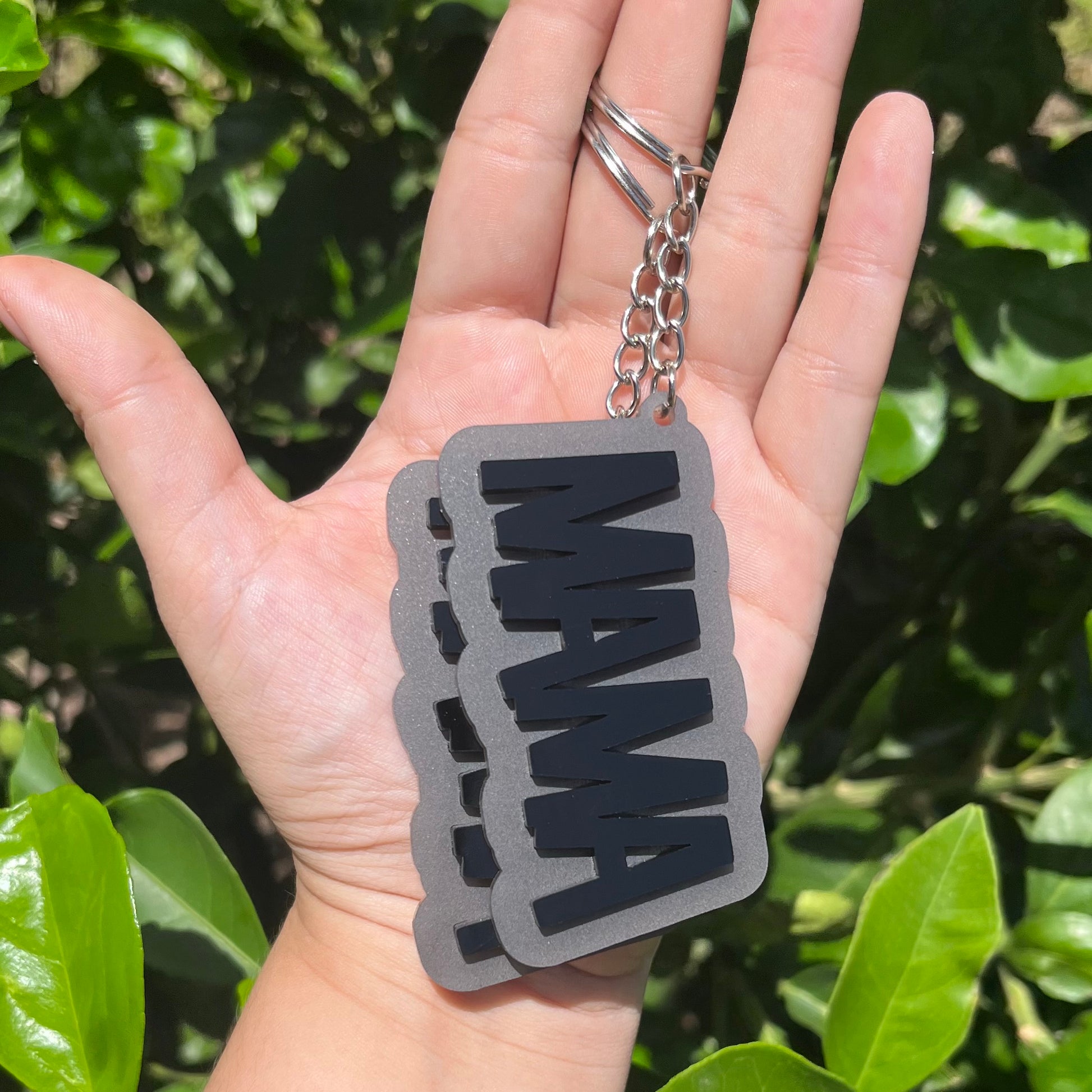 Mama Matte Gray and Glossy Black Acrylic Keychain RTS