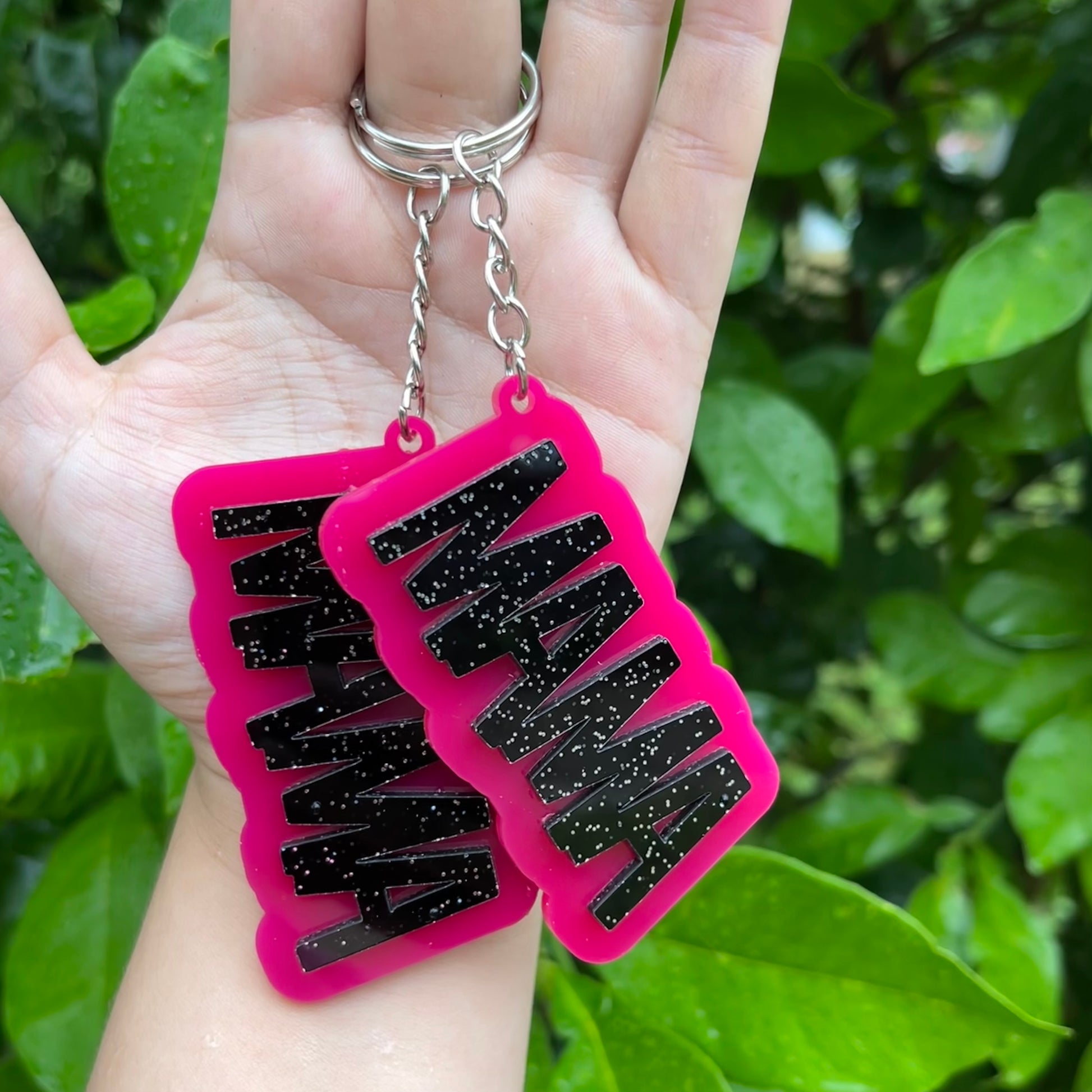 Mama Rose Red and Glitter Black Acrylic Keychain RTS