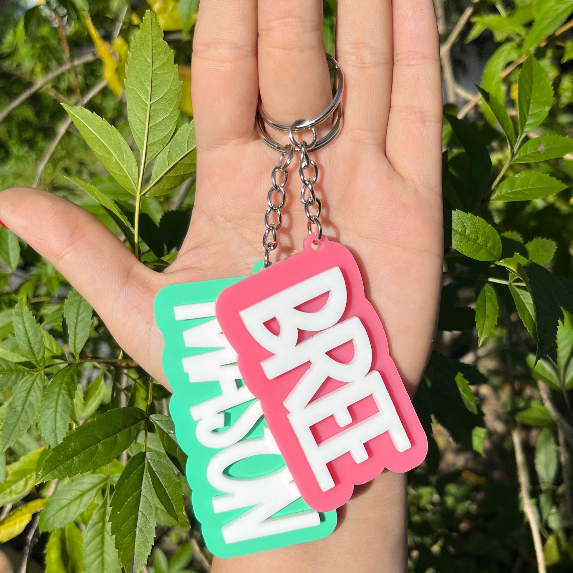 Mint and Pink Block Acrylic Keychain