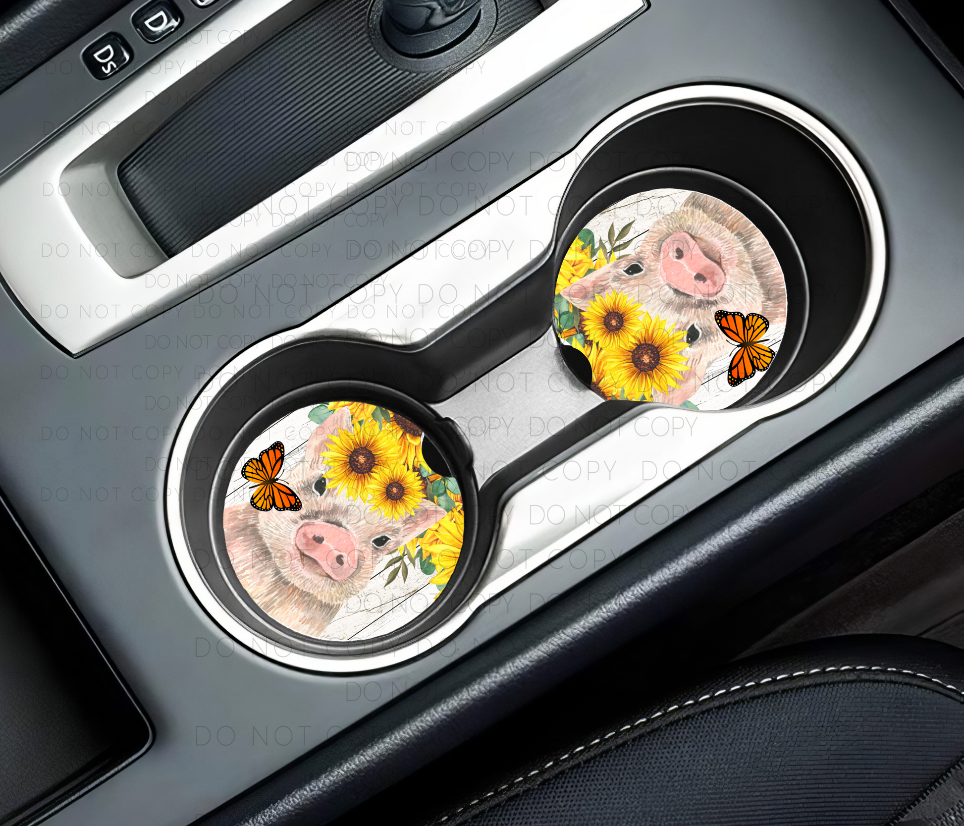 Pig And Sunflowers Car Coasters