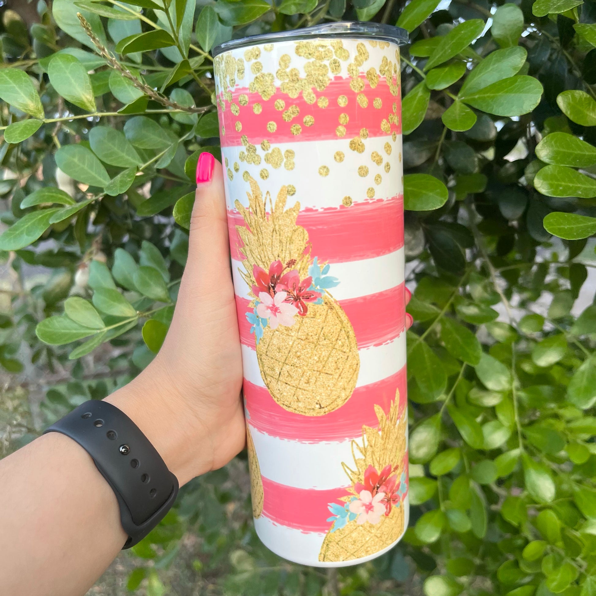 Pineapple Pink Stripes Gold Glitter 20oz Tumbler